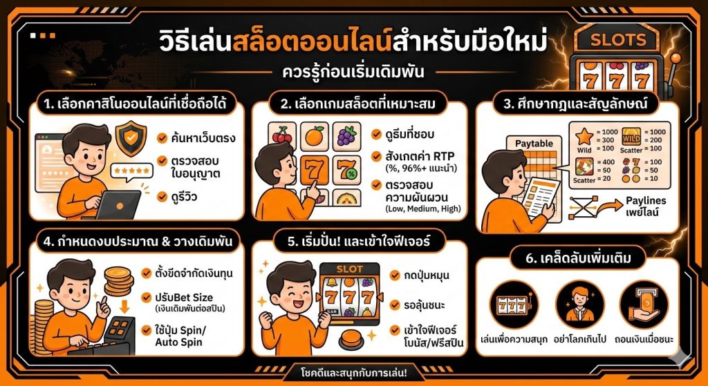 บทความนี้จะพาไปรู้จักวิธีเล่นสล็อตออนไลน์แบบละเอียด ตั้งแต่พื้นฐานของเกม ระบบการทำงาน วิธีการเริ่มเล่น รวมถึงเทคนิคเบื้องต้นที่ช่วยให้ผู้เล่นเข้าใจเกมมากขึ้น เพื่อให้มือใหม่สามารถเริ่มเล่นสล็อตได้อย่างมั่นใจและสนุกกับเกมมากยิ่งขึ้น